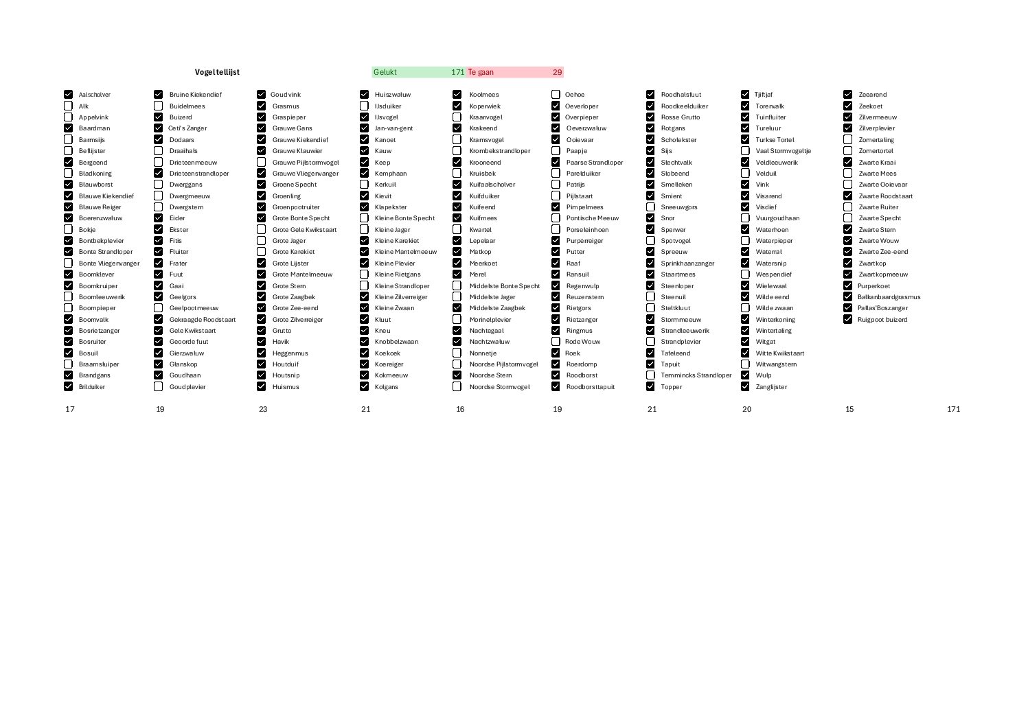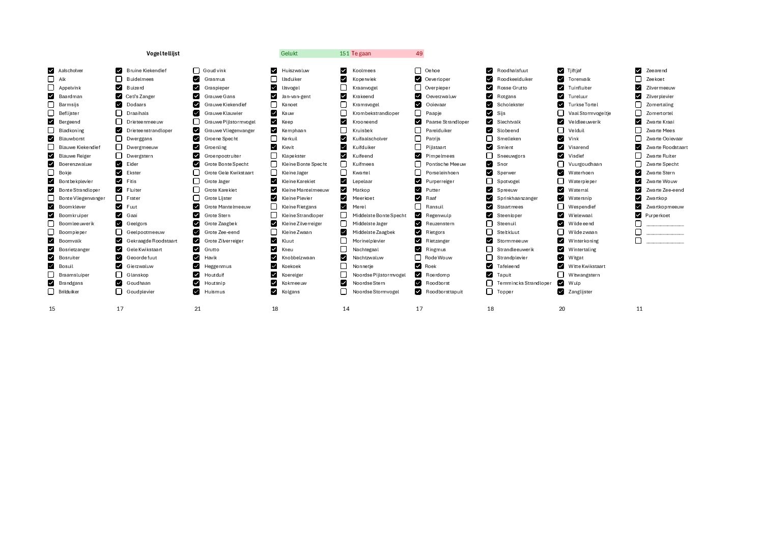 Progress of the 200 birds challenge.